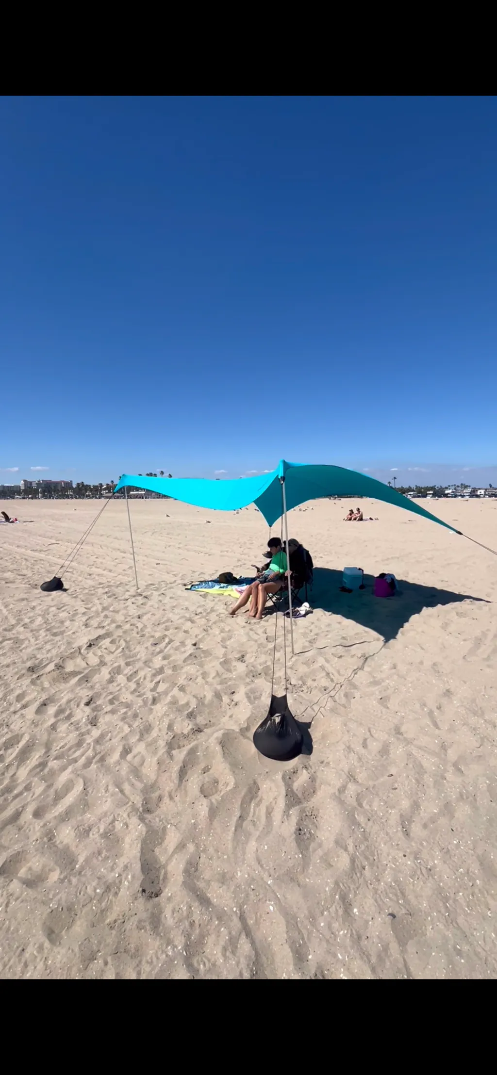 Our signature beach tent, anchored with sand or rocks, designed for ultimate ease.